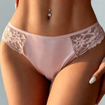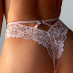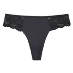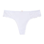 An elegant thong that combines comfort and sensuality. The front in soft microfibre hugs the skin, while the sides in sheer floral lace add a refined touch. The back plays with seduction with its cheeky cut and delicate detailing.