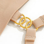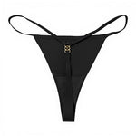 Minimalist string with a golden ring, designed for an "invisible + jewellery" effect. Its elongated central band smooths the intimate area, avoiding marks. Made from soft, stretchy material with a string back, perfect under fitted clothing. Available in black, nude, and mocha.