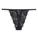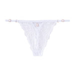 A sensual floral lace string, featuring fully adjustable straps for a perfect and personalised fit. Its jewel detail at the front adds a touch of glamour, while its minimalist thong cut accentuates curves and reveals just enough. Light, comfortable, and ultra-sexy.