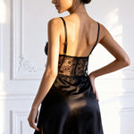 The Viviana nightdress combines the softness of satin with the sensuality of black lace.